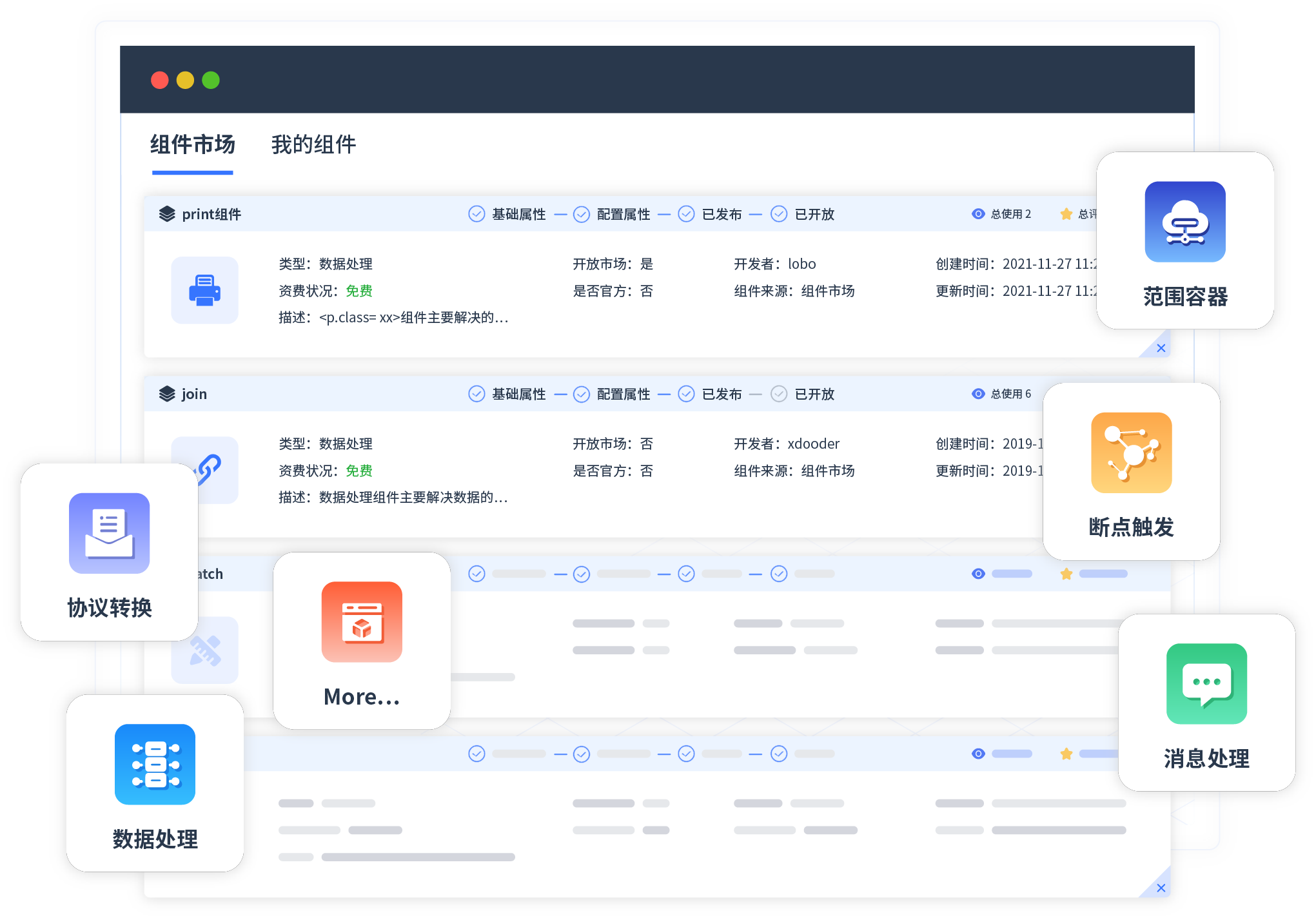 针对集成场景,,,,,,,,NO钱包提供组件市场,,,,,,,,,,,,,,例如协议转换、、、、、、、消息处理、、、、、、、、、文件操作等。。。。除平台提供的组件外,,,,,,,客户可以自定义所需组件。。。。。。。。。。。。。。。